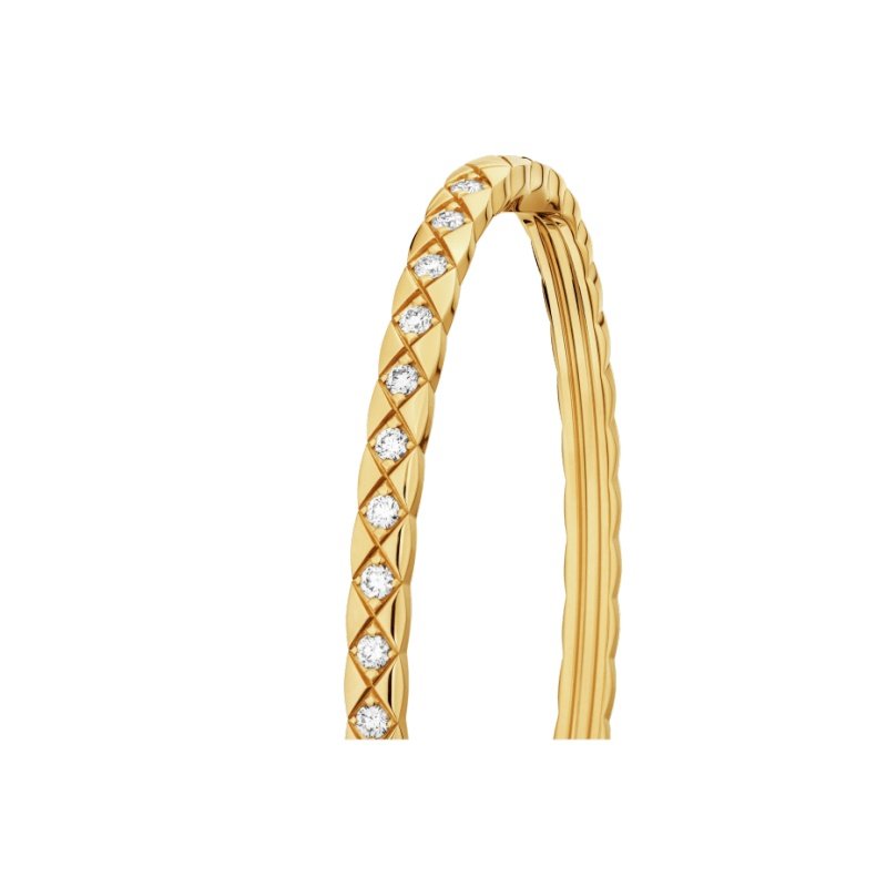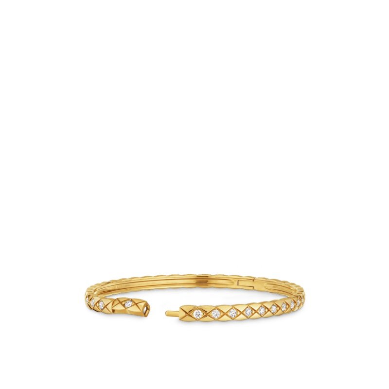 Quilted motif, mini version, 18K yellow gold, diamonds